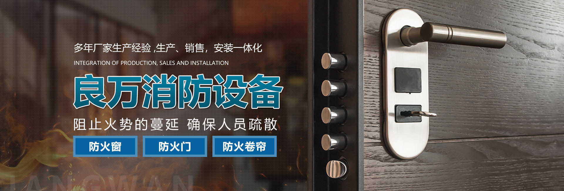合肥良萬(wàn)消防設(shè)備有限公司位于合肥市包河工業(yè)園,生產(chǎn)銷售安裝:防火門、防火卷簾門、防火窗等消防安全產(chǎn)品。公司具有研發(fā)、設(shè)計(jì)、生產(chǎn)、銷售、及安裝服務(wù)的綜合配套能力。合肥良萬(wàn)消防設(shè)備有限公司技術(shù)力量強(qiáng),設(shè)備齊全,產(chǎn)品不斷創(chuàng)新,以信譽(yù)立業(yè),客戶滿意是我們永無止境的追求。我們?cè)诒WC產(chǎn)品質(zhì)量的同時(shí),也十分注重售后服務(wù),保證消防安全產(chǎn)品的正常運(yùn)行。公司始終堅(jiān)持誠(chéng)信為本的企業(yè)宗旨,真誠(chéng)希望與社會(huì)各界新老客戶精誠(chéng)合作,良萬(wàn)愿與您攜手共創(chuàng)輝煌!